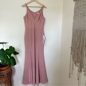New With Tags Dress The Population Iris Slit Crepe Gown in Blush sz L