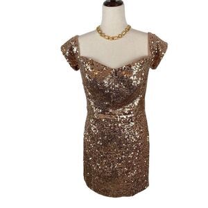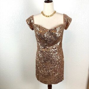 Dress The Population Jada Gold Sequin mini Dress Women’s Off The Shoulder Short