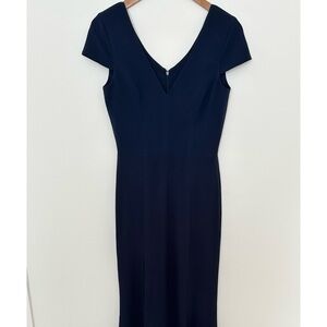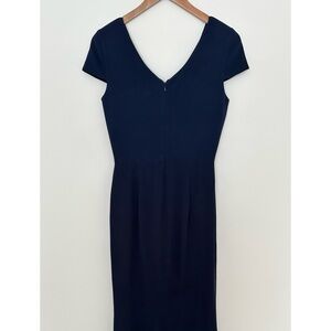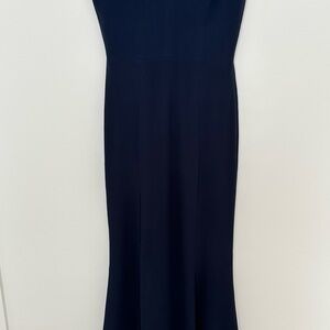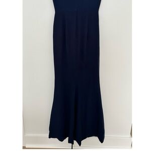With a neckline reaching to alluring depths and a front slit soaring to seductive heights, this gown immediately gathers gazes of admiration.