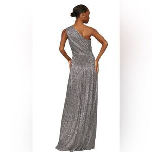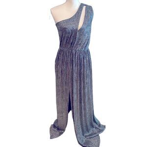 Keep your look simple and elegant in this metallic one-shoulder gown by Dress The Population.