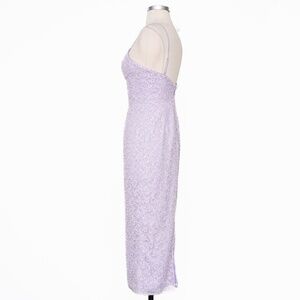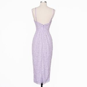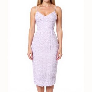 Dress The Population. Lace Pearl Beaded Sweetheart Neckline Midi Dress.