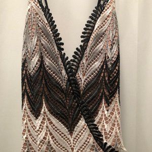 Dress The Population Lucia Chevron Lace Maxi Dress Size Small BL/WH- Like New