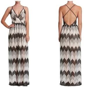 Dress The Population Lucia Dress Womens Medium Black White Crochet Chevron Maxi
