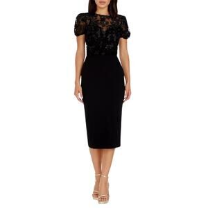 NWT Dress The Population Marianne Embroidered Blouson Black Mididress S