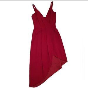 Dress The Population Midi Wrap Dress Womens Small Red Asymmetrical Hem Strappy