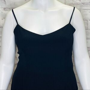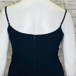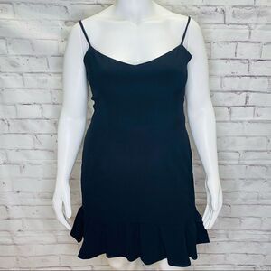 Mira Dress ruffled hem lends a frilly finishing touch to a figure-skimming Black party dress in a classic silhouette with adjustable shoulder straps.