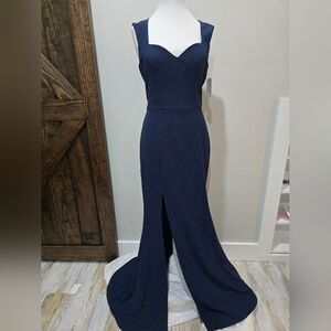 Dress The Population Monroe Side Slit Gown NWOT size Medium Midnight Blue