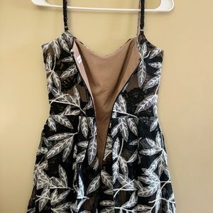 Dress The Population NWOT pleated Fit & Flare Lace Dress in Black/White Size XS.