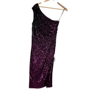 Dress The Population NWT Palmer One Shoulder Sequin Midi Bodycon Dress Size L