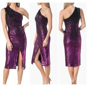 Dress The Population NWT Palmer One Shoulder Sequin Midi Bodycon Dress