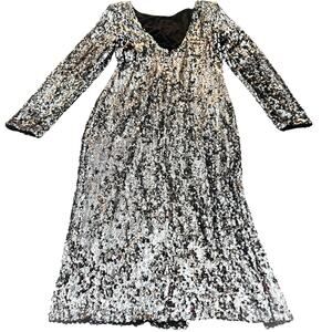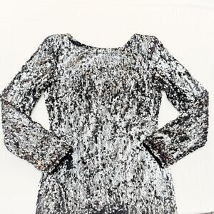 Dress The Population Natalie Sequin Side Slit Long Sleeve Dress Silver Size L