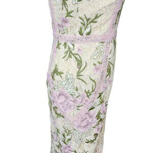 Dress The Population Penelope Sleeveless Sheath Cream Pink Green Lace M NWT