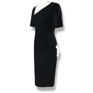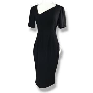 Dress The Population Ruth Asymmetric Neck Bodycon Sheath Midi Dress Black M NWT