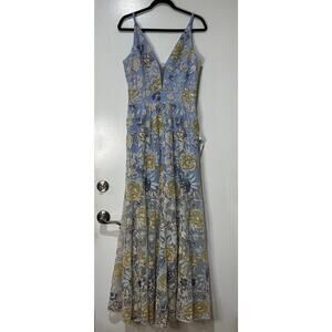 Dress The Population Samira Embellished Chiffon Gown Sky Multi Size Medium NWT