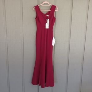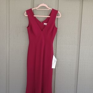 Dress The Population Sandra Dress Size S Wedding Guest Crepe V Neck In Garnet