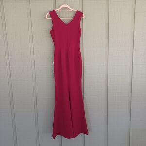 Dress The Population Sandra Dress SZ S In Garnet Crepe Plunging V Neckline High Slit