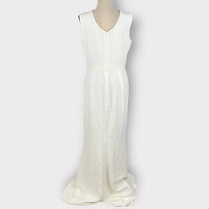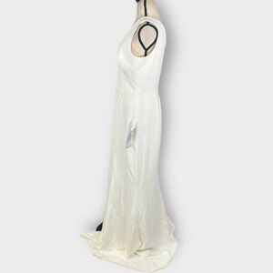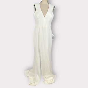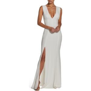 Dress The Population Sandra Trumpet Gown Dress Women's Med White Plunge Maxi NWT