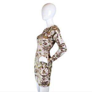 -Dress The Population Sequin Long Sleeve Mini Dress Gold Multi Size XS
