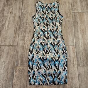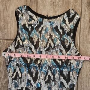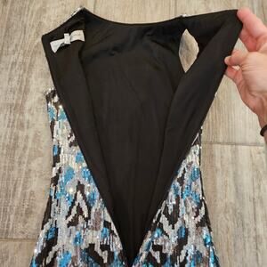 Dress The Population Sequin Mini Dress Womens Size XS Blue Silver Black Cocktail