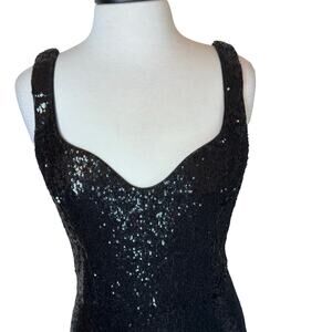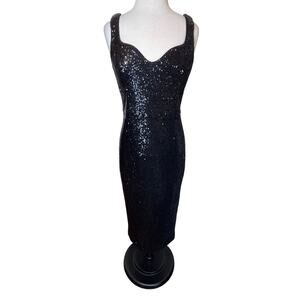 Dress The Population Sloane Sheath Sequin Black Cocktail Party Dress Women's L