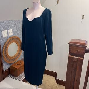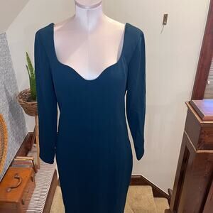 Dress The Population Sonia Long Sleeve Pine Green Fitted Midi Dress Size Large