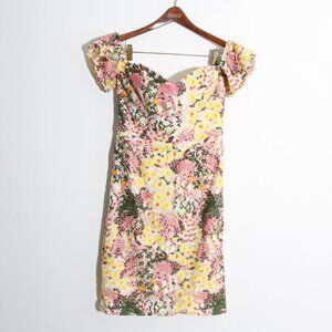 Dress The Population Tara Off the Shoulder Midi Dress Blush Multi Floral Medium