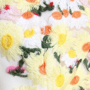 Condition: Good pre-owned condition; mild signs of wear throughout; a few snags/pulls/loose threads in the embroidery stitching throughout (see photos); some rips in the mesh fabric near the bottom hem (see photos); some bunching of the interior lining fabric. Please note that this dress looks to have been hemmed from its original length. Bust to hem length ~32.5" long.