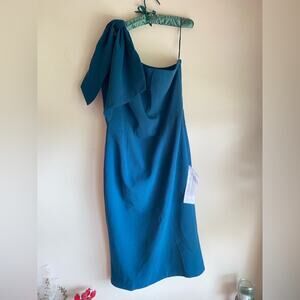 Dress The Population Tiffany Dress one shoulder midi crepe peacock blue extra l