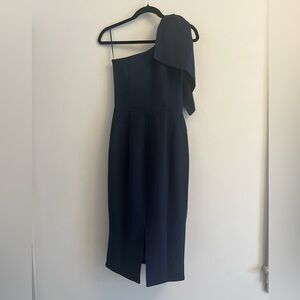 Dress The Population Tiffany One Shoulder Midi Dress in Midnight Blue - S