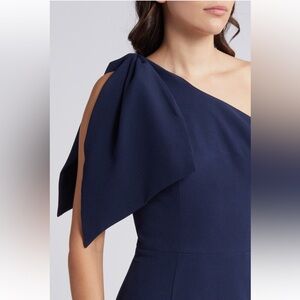 Dress The Population Tiffany One-Shoulder Midi Dress Midnight Blue XXL Bow Event