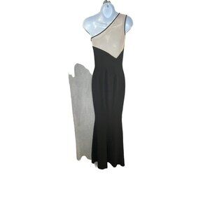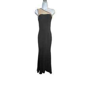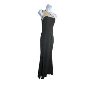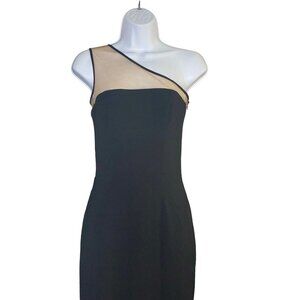 Dress The Population Womens One Shoulder Long Evening Dress Mesh Raelyn Black
