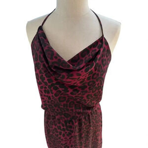 Dress The Population Zherra Red Leopard Animal Print Halter Dress Size S