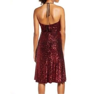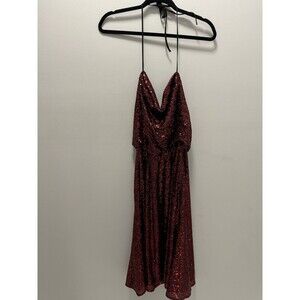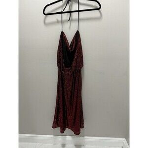 Dress The Population Zherra Red Sequin Cowl Neck Halter Dress Size Small