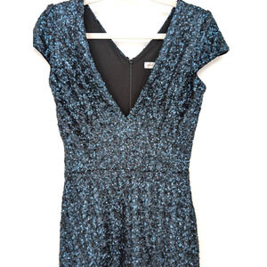 Dress The Population Zoe Navy Glam Bling Sequin Deep V Neck Mini Event Dress SML