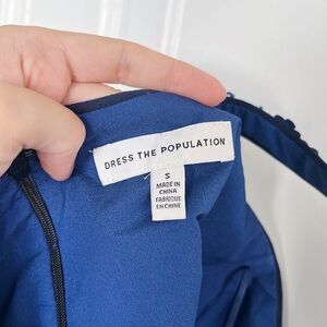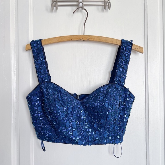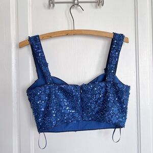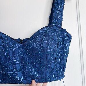 Dress The Population • beaded crop top midnight blue floral applique bustier
