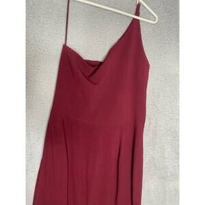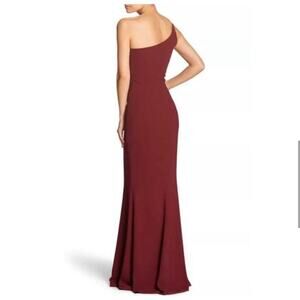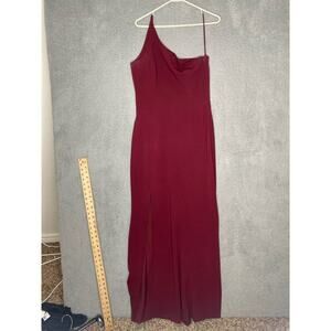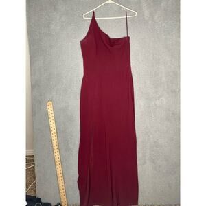 Dress The Population maroon Amy one shoulder crepe gown bridesmaid side slit M