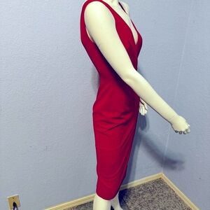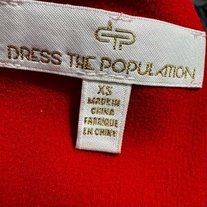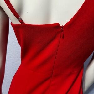 Dress The Population Erika Asymmetrical Shoulder V-neck Fitted Rouge/Red Dress