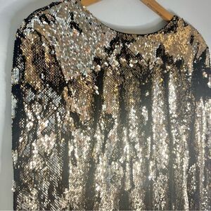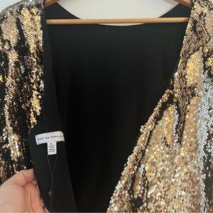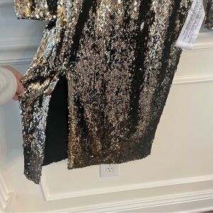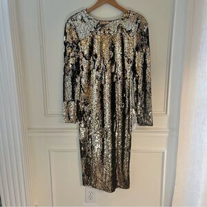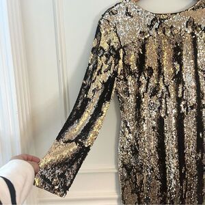 Dress The Population Natalie Long Sleep Low Back Sequin Dress Gold, Size XL, NWT