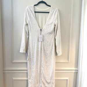Dress The Population Emery Sequin Long Sleeve Dress in White Large NWT