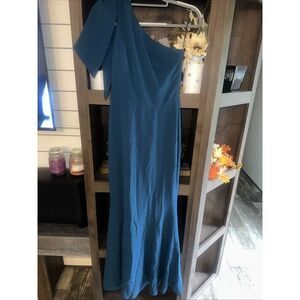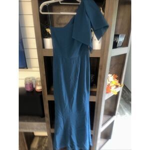 Dress The Population Peacock Blue Georgina One Shoulder Bow Gown. Size Small. 17