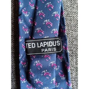 This product is a high-quality silk tie from the brand TED LAPIDUS, featuring a classic 3-inch width and a blue color with a floral pattern. The tie is vintage and handmade, with a retro and preppy style that adds a touch of nostalgia to any outfit. Perfect for men looking to add a unique and stylish accessory to their wardrobe, this tie is sure to make a statement and elevate any professional or formal look.