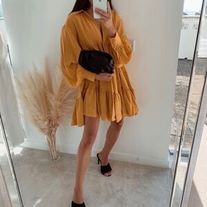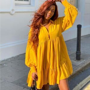 Dress Tunic Poplin Cotton Volume Puff Sleev S NWT