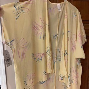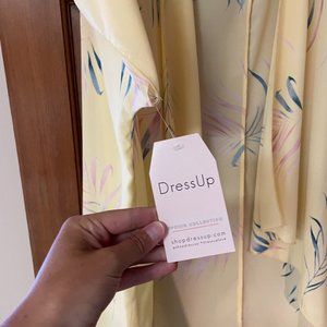 Dress Up BNWT small light yellow long kimono with light pink and green leaves