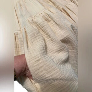 Dress Up Tiered Tunic Top Ivory Oversized Muslin cotton Raw edge Pockets Sz L Great preowned condition