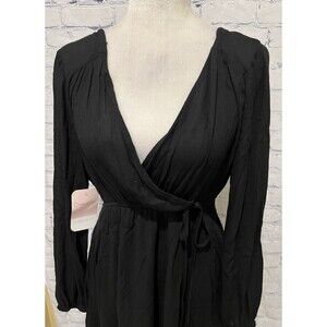 Elevate your style with this stunning black wrap dress from Dress Up. Designed with a flattering V-neckline and long sleeves, this dress is perfect for any occasion. The solid pattern and short dress length make it a versatile addition to your wardrobe.