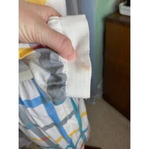 1980s does 1950s dress dolman sleeve, primary colors and shoulder pads pockets. does have a few small stains.