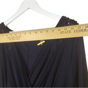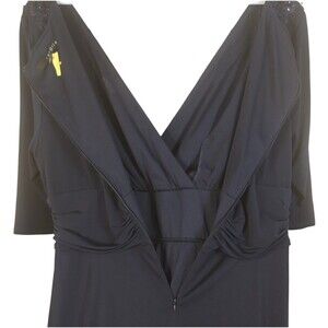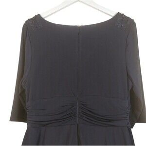 Sangria Dress Women's 14W Half Sleeve Suplice Bodice Navy Knit Lined Beaded Maxi