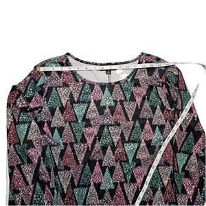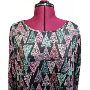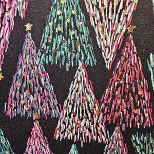 Featuring a striking holiday Christmas tree print, it's perfect for a fun holiday occasion. The blend of colors adds a modern touch to your look.