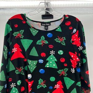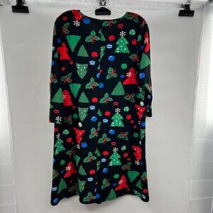 Dress Works Women's Christmas Print 3/4 Sleeve Shift Dress Black/Multi Medium