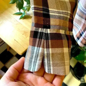 Dress barn blazer women , linen blend brown& white plaid soft blazer Size Medium